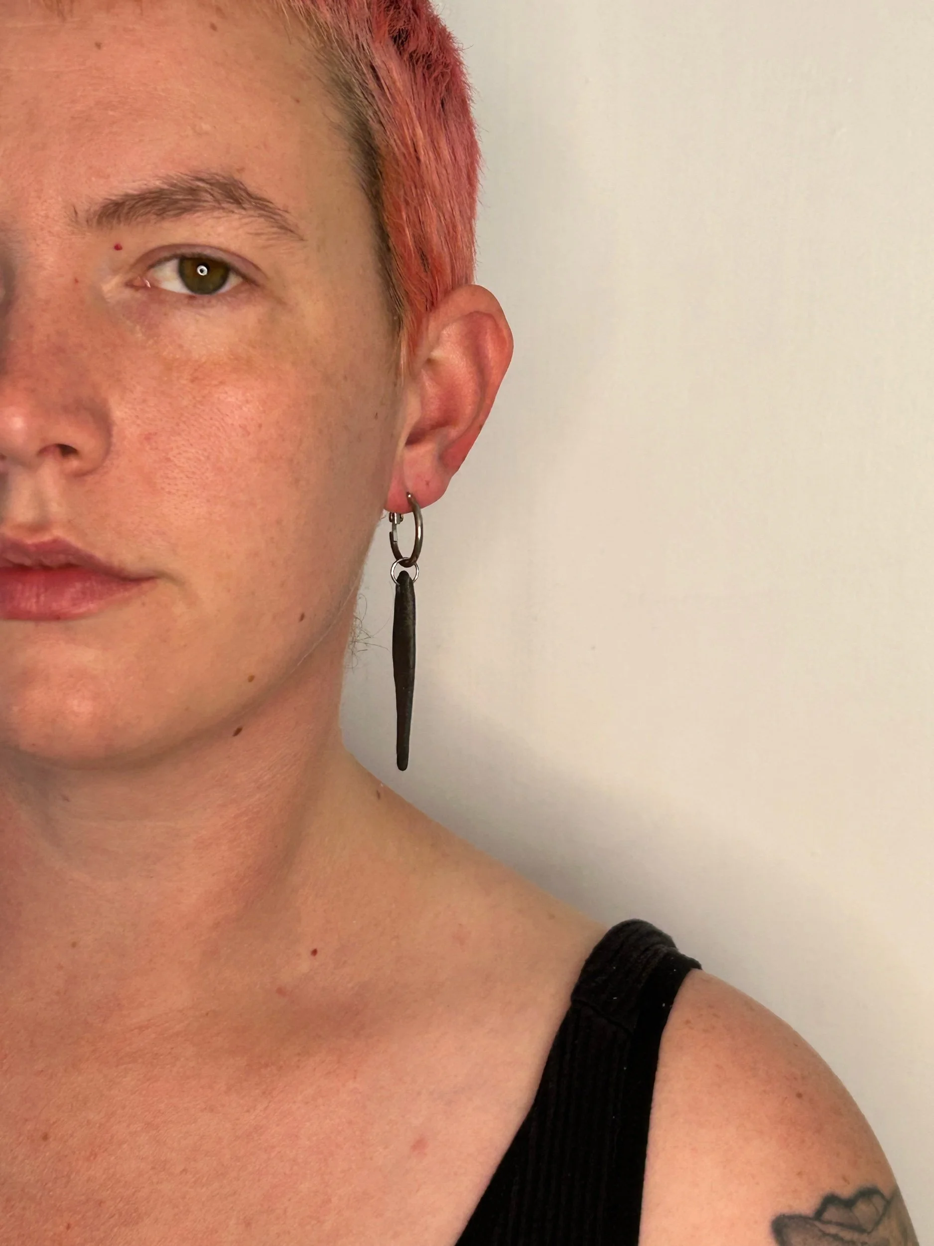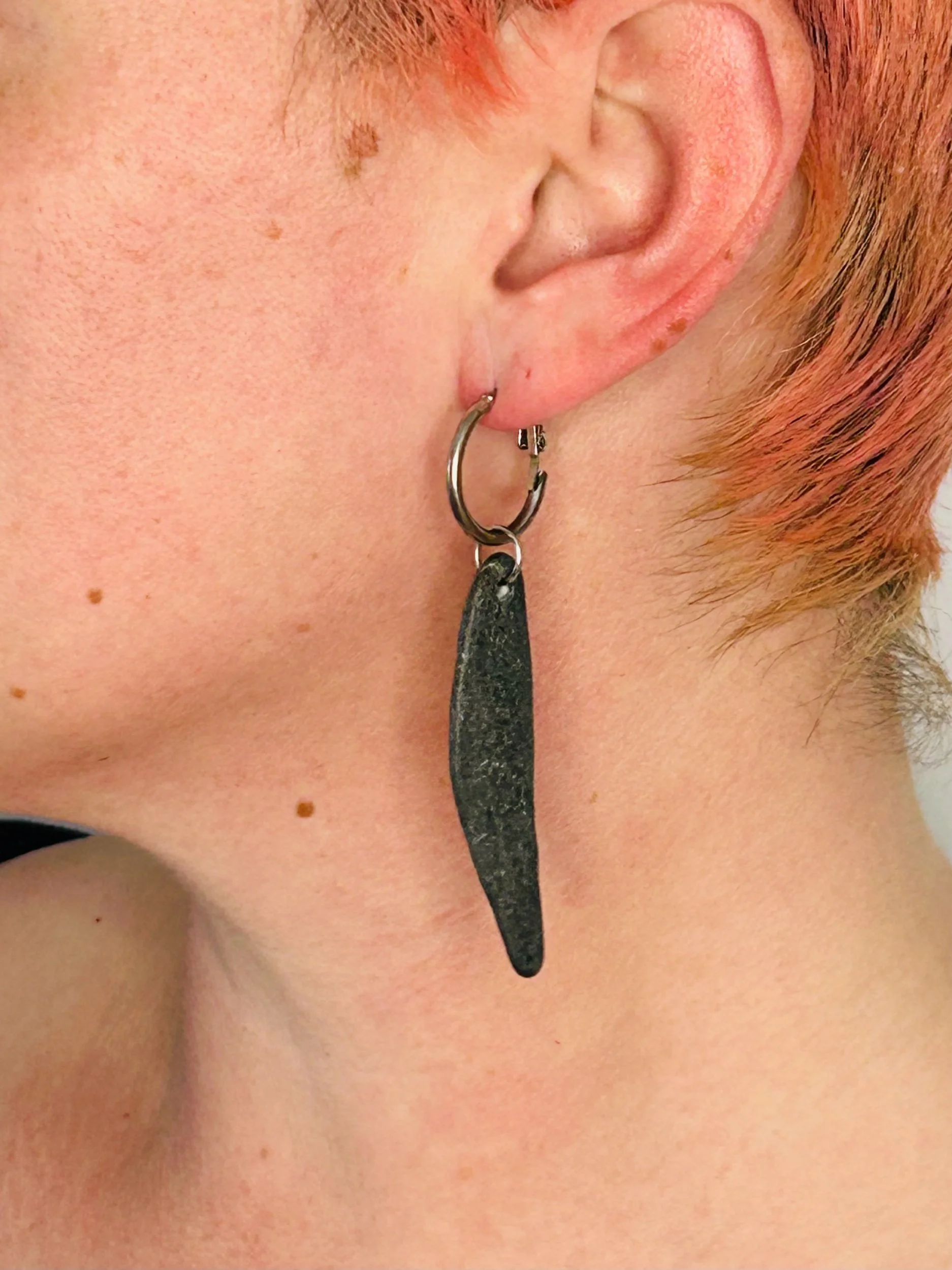 Shop › Rock Earring 001 Image 1 of 3 Image 2 of 3 Image 3 of 3 Rock Earring 001 $20.00 3 inchesReclaimed silver hoop Add To Cart Added! 3 inchesReclaimed silver hoop